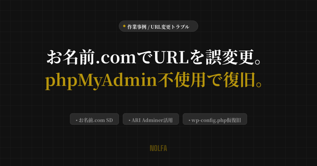 お名前.comサーバーSDでURLを誤変更してサイトが見れなくなった。phpMyAdmin不使用での復旧手順。