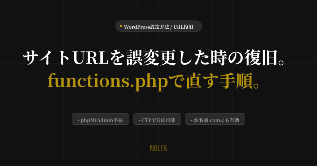 サイトURLを間違えてアクセスできなくなった時の復旧方法|functions.phpで直す手順