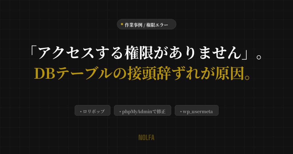 「このページにアクセスする権限がありません」の原因はDBテーブルの接頭辞ずれ