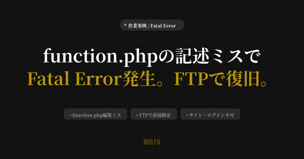 function.phpの記述ミスでFatal Errorが発生。サイトもログインも不可になった。